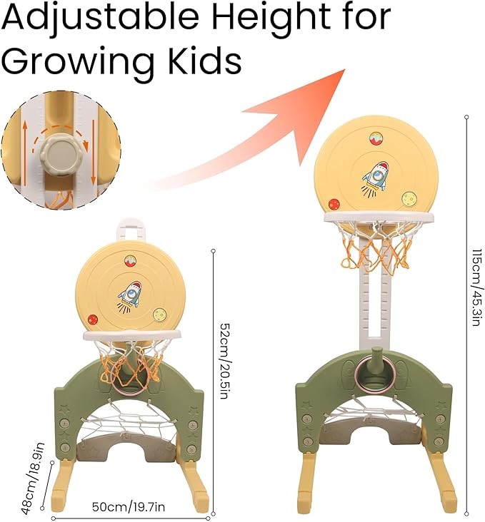 • 3-in-1 Toddlers Basketball Hoop: Our children's sports center is perfect for basketball, soccer, and ring toss games. It helps improve physical fitness, balance, and coordination while boosting kids' courage and confidence