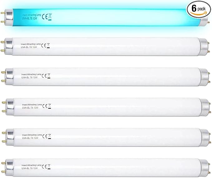 6 Pack T8F10W BL 10W Replacement Bulbs T8 10 Watts Fluorescent Tube for 20W Device 13 Inch 365-nm Black Light