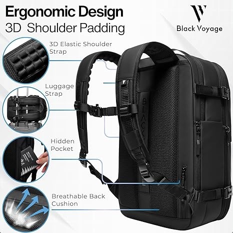 • Comfortable and Breathable: Designed for long journeys, this backpack features a honeycomb back pad for superior air circulation, keeping your back cool and dry. Adjustable padded shoulder straps with shock-absorbing foam ensure all-day comfort, even on extended trips.