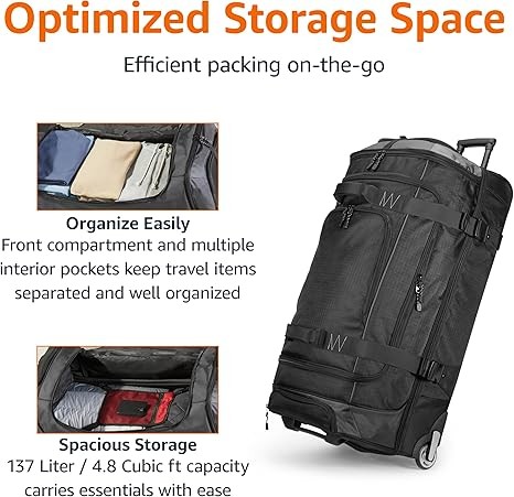 • EASY MOBILITY: Equipped with a telescopic handle and in-line wheels, this wheeled duffel bag offers smooth navigation through airports and busy streets