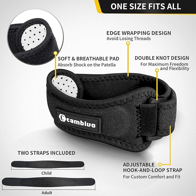 • Fully Adjustable Patellar Tendon Support Strap: Double-knot Design; Fully adjustable; The perfect-fit of the strap reduces the pressure on the patella tendon and thus helps to provide extra support while running or exercising; Regain your stability; Especially crafted for people suffering from knee instability