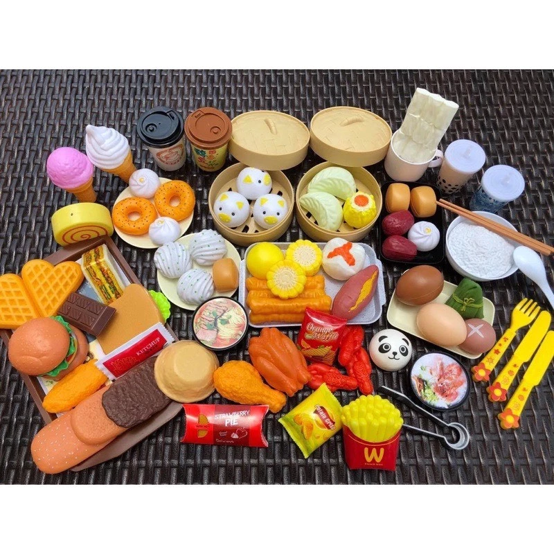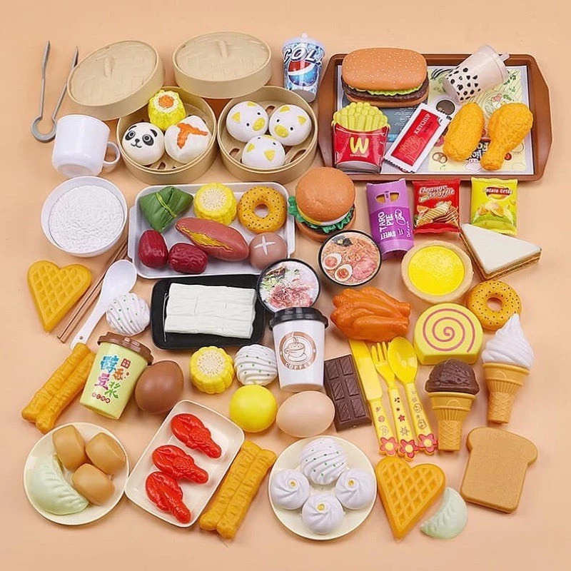 1. Đồ Chơi Hộp Mô Hình Món Ăn 88 Chi Tiết Cho Bé VINATOYS, Món Ăn Cho Trẻ Em, Bé Trai, Bé Gái Mô Phỏng Như Thật * Set đồ chơi nấu ăn bao gồm tất tần tật các từ Á tới Âu cho các bé tha hồ thoả chí sáng tạo. Có bánh banh, há cảo, trứng ốp la, Dimsum, khoai nướng,...với các phụ kiện giỏ hấp, chén, ly đi kèm. * Còn gì bằng khi được chơi trò đóng vai đầu bếp, người bán hàng, người ăn hàng rồi order món ăn, trả giá blaba... Chơi đồ hàng tạo sự tương tác tích cực rất lớn giữa các thành viên trong gia đình đó ạ. * Hơn nữa, bé còn luyện tập được trí tưởng tượng, khả năng xử lý tình huống, kĩ năng thuyết phục, cách bày trí, v.v... * Dimsum, mì gói, khoai tây chiên, bánh giò, bánh xếp, bánh tart, kem, bánh bao hấp, trứng gà, trà sữa....tất tần tật các thể loại món ăn 2. Đồ Chơi Hộp Mô Hình Món Ăn 88 Chi Tiết Cho Bé VINATOYS, Món Ăn Cho Trẻ Em, Bé Trai, Bé Gái Mô Phỏng Như Thật +ĐỒ CHƠI siêu CUTE +Mê quá các bé ơi, có món khoai lang nướng +Nhóc nhà em thấy là mê lắm nè, thêm bánh bao heo vàng xinh nữa chứ + Tha hồ chơi đồ hàng, nấu ăn, buôn bán nhá con ơi +Chất liệu nhựa ABS an toàn. 3. Đồ Chơi Hộp Mô Hình Món Ăn 88 Chi Tiết Cho Bé VINATOYS, Món Ăn Cho Trẻ Em, Bé Trai, Bé Gái Mô Phỏng Như Thật - THƯƠNG HIỆU ĐỒ CHƠI VINATOYS CAM KẾT: + Hình ảnh sản phẩm giống 100%. + Chất lượng sản phẩm tốt 100%. + Sản phẩm được kiểm tra kĩ càng, nghiêm ngặt trước khi giao hàng. + Sản phẩm luôn có sẵn trong kho hàng. + Giao hàng ngay khi nhận được đơn hàng. + Hoàn tiền ngay nếu sản phẩm không giống với mô tả. + Giao hàng toàn quốc, nhận hàng thanh toán. + Hỗ trợ đổi trả theo chính sách của Shopee Mall (nếu do lỗi từ nhà sản xuất) + Tư vấn và giải đáp mọi thắc mắc của khách hàng liên quan đến sản phẩm