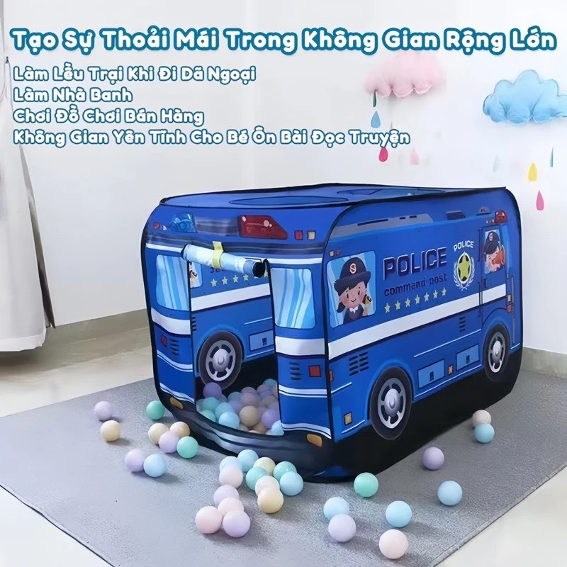 +Sản phẩm: Lều cho bé (xe cảnh sát) màu xanh, (xe cứu hỏa) màu đỏ