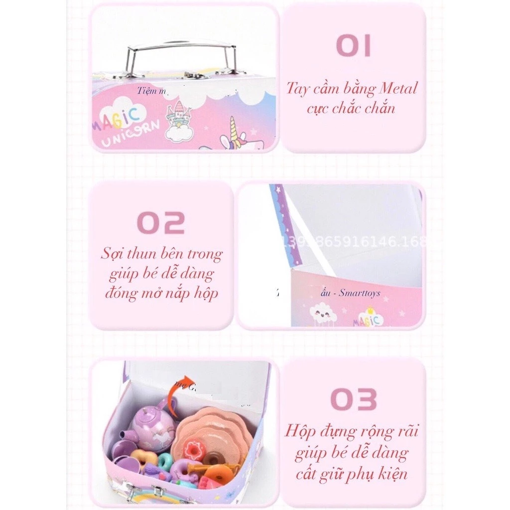 1. Đồ Chơi Vali Trà Bánh PONY VINATOYS, Có Ấm Chén Tháp Bánh Bằng Nhôm Cao Cấp, 48 Chi Tiết An Toàn Cho Bé