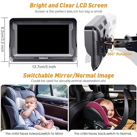 • 360° FULLY ADJUSTABLE CAMERA FOR CUSTOMIZED VIEWING: Enjoy a 360° rotating camera for optimal positioning. Easily adjust to fit various car seat models and vehicle types. The easy installation design ensures setup in minutes, offering full customization to secure your baby's comfort and safety on every drive.