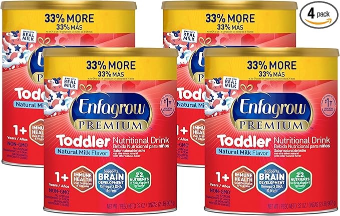 Enfagrow PREMIUM Toddler Nutritional Drink, Natural Milk Flavor, Omega-3 DHA for Brain Support, Prebiotics & Vitamins for Immune Health, Non-GMO, Powder Can, 32 Oz (Pack of 4)