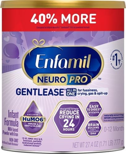 Enfamil NeuroPro Gentlease Baby Formula, Brain Building DHA, HuMO6 Immune Blend, Designed to Reduce Fussiness, Crying, Gas & Spit-up in 24 Hrs, Gentle Infant Formula Powder, Baby Milk, 27.4 Oz Can