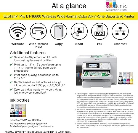 Epson EcoTank Pro ET-16600 Wireless Wide-format Color All-in-One Supertank Printer with Scanner, Copier, Fax, and Ethernet