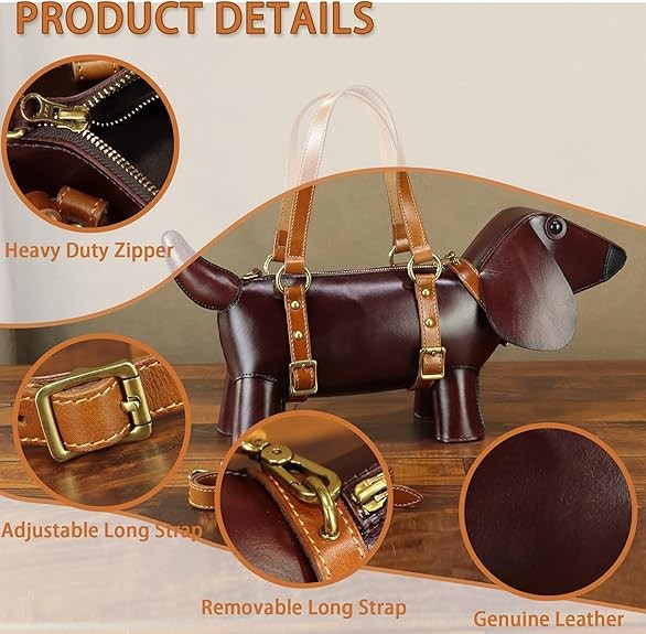 Genuine Leather Purses and Handbags for Women Unique Handmade Cute Dog Shape Fashion Crossbody Shoulder Bag Vintage Satchel