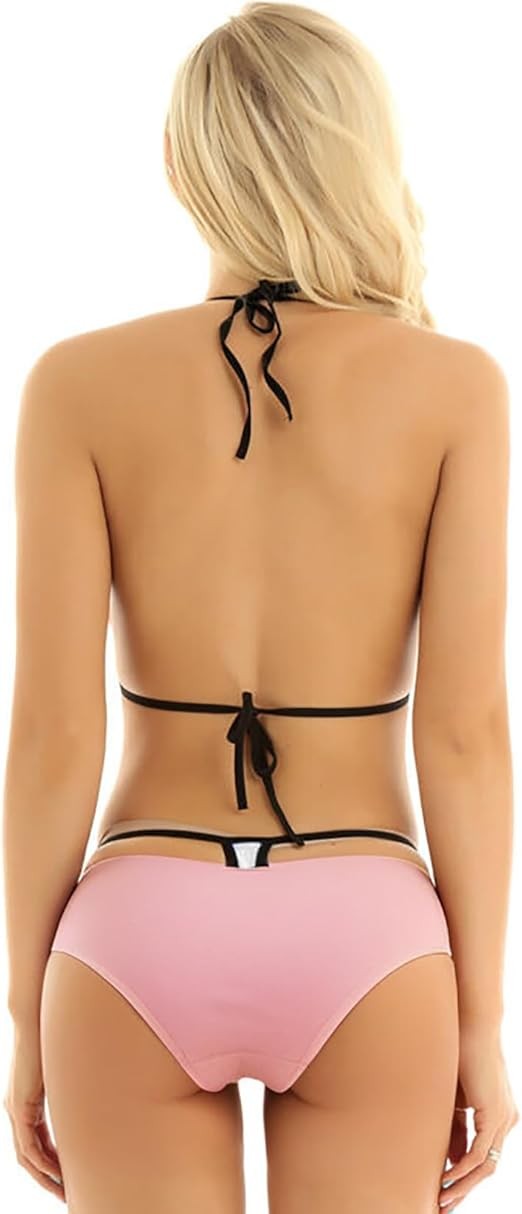 • Unique Bra Top: Micro triangle bralette, elastic spaghetti strappy self tie at back and neck, no pad,backless design make you more chic and charming.