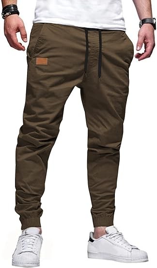 JMIERR Mens Casual Joggers Pants - Cotton Drawstring Chino Cargo Pants Hiking Outdoor Twill Track Jogging Sweatpants Pants