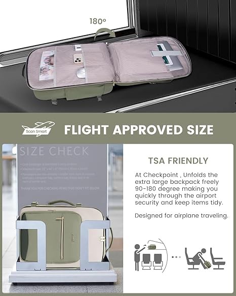 • 【Versatile & Airline Approved】Measuring 18*14*8 inches, this carry on backpack fits under the seat or in the overhead compartment, approved by Spirit, Frontier, JetBlue, and other budget-friendly airlines, making it the perfect personal item for air travel.