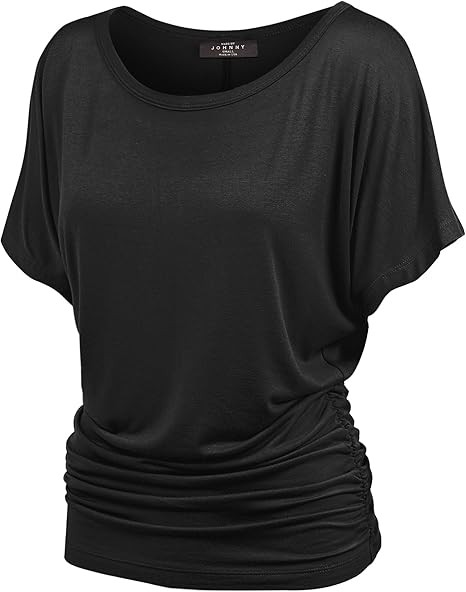 Made By Johnny Women's Casual Solid Short Sleeve Boat Neck/V Neck Dolman Top T Shirt with Side Shirring