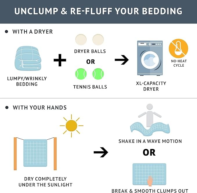 • Care instructions: Machine wash, delicate and separately; Tumble dry low; Spot clean decorative pillows Items in this set may come in rolled or compressed packaging and will need to be fluffed up