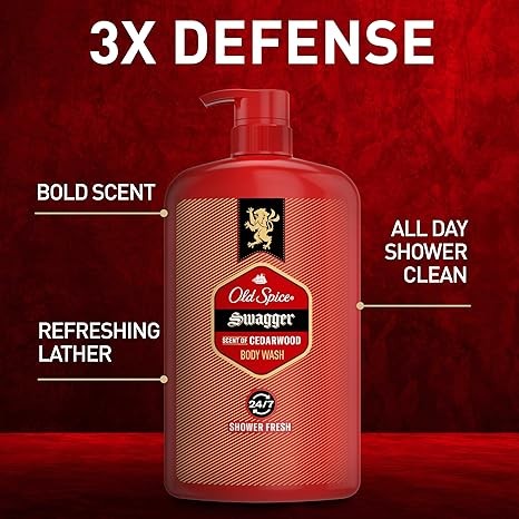 • Old Spice Body Wash for Men, 24/7 Shower Fresh with Lasting Scent, Red Collection, Swagger with Cedarwood Scent, 33.4 fl oz (Pack of 4)