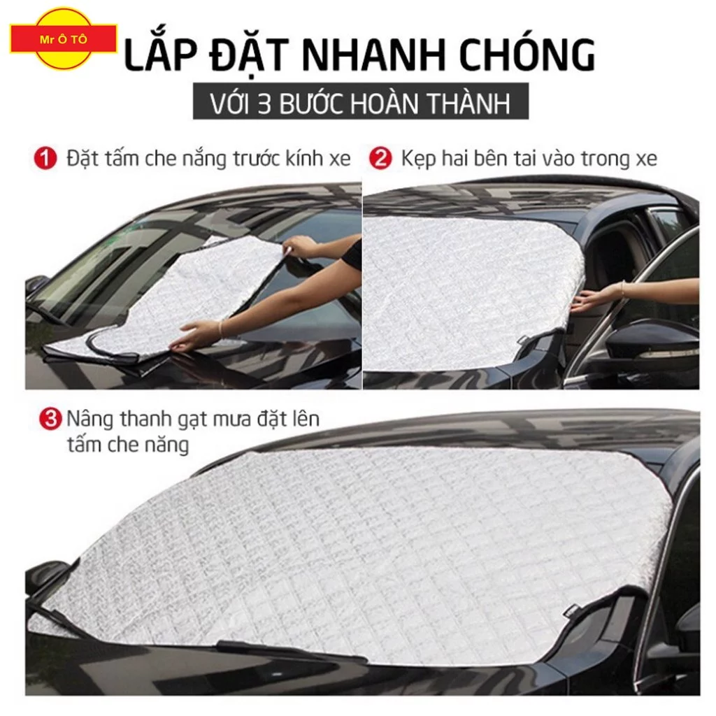 ấm Chắn Nắng Kính Lái Ô TÔ Loại 1 MR ÔTÔ 3 Lớp Chống Nóng Bảo Vệ Nội Thất Xe Hơi, Dễ Lắp Đặt Và Cất Gọn BCKL001 THÔNG TIN SẢN PHẨM: Tên Sản Phẩm: Tấm Chắn Nắng Kính Lái Ô TÔ Loại 1 MR.OTO 3 Lớp Chống Nóng Bảo Vệ Nội Thất Xe Hơi, Dễ Lắp Đặt Và Cất Gọn BCKL001 Chất Liệu: Vải bạt tráng nhôm cao cấp dày đẹp chống nóng Màu Sắc: Trắng bạc, ba chiều in nổi, thời trang Trọng Lượng: 800gram ĐẶC ĐIỂM SẢN PHẨM: - Lớp chất liệu 3D tráng nhôm phản quang chắn nắng . Chống tia UV, tia cực tím cực kỳ hiệu quả. - Bông có tác dụng giảm nhiệt do ánh nắng. - Vải nỉ đen mềm giúp giảm ma sát lên kính vày là lớp phủ màu đen . Lớp cuối cùng giúp chắn toàn bộ ánh nắng không thể chiếu vào xe. - Lớp phủ giấy bạc cách nhiệt CÔNG DỤNG CỦA SẢN PHẨM: - Che chắn hoàn toàn kính lái trước, chống nóng, chống sốc nhiệt, ngăn tia UV làm hỏng nội thất xe. - Đơn giản, gọn nhẹ, gấp mở cực kỳ dễ dàng, thuận tiện - Sản phẩm gồm 3 lớp dày dặn, chịu được nắng, mưa, bão, tuyết - Bề mặt là chất liệu vải bạt tráng nhôm, phản quang chắn nắng cực tốt, chống thấm nước Ở giữa là lớp bông cũng có tác dụng cản nhiệt - Trong cùng là vải nỉ đen mềm chống trầy xước phần kính lái ô tô - Thiết kế tai kẹp lớn chống gió, chống trộm - Có các loại kích thước phù hợp với tất cả các dòng xe SUV, Sedan, Hatchback,... MR Ô TÔ CAM KẾT: - Hoàn tiền nếu sản phẩm bạt che kính lái không giống với mô tả - Miễn phí đổi trả nếu sản phẩm tấm chắn nắng ô tô sai lắp lên xe không vừa như quảng cáo